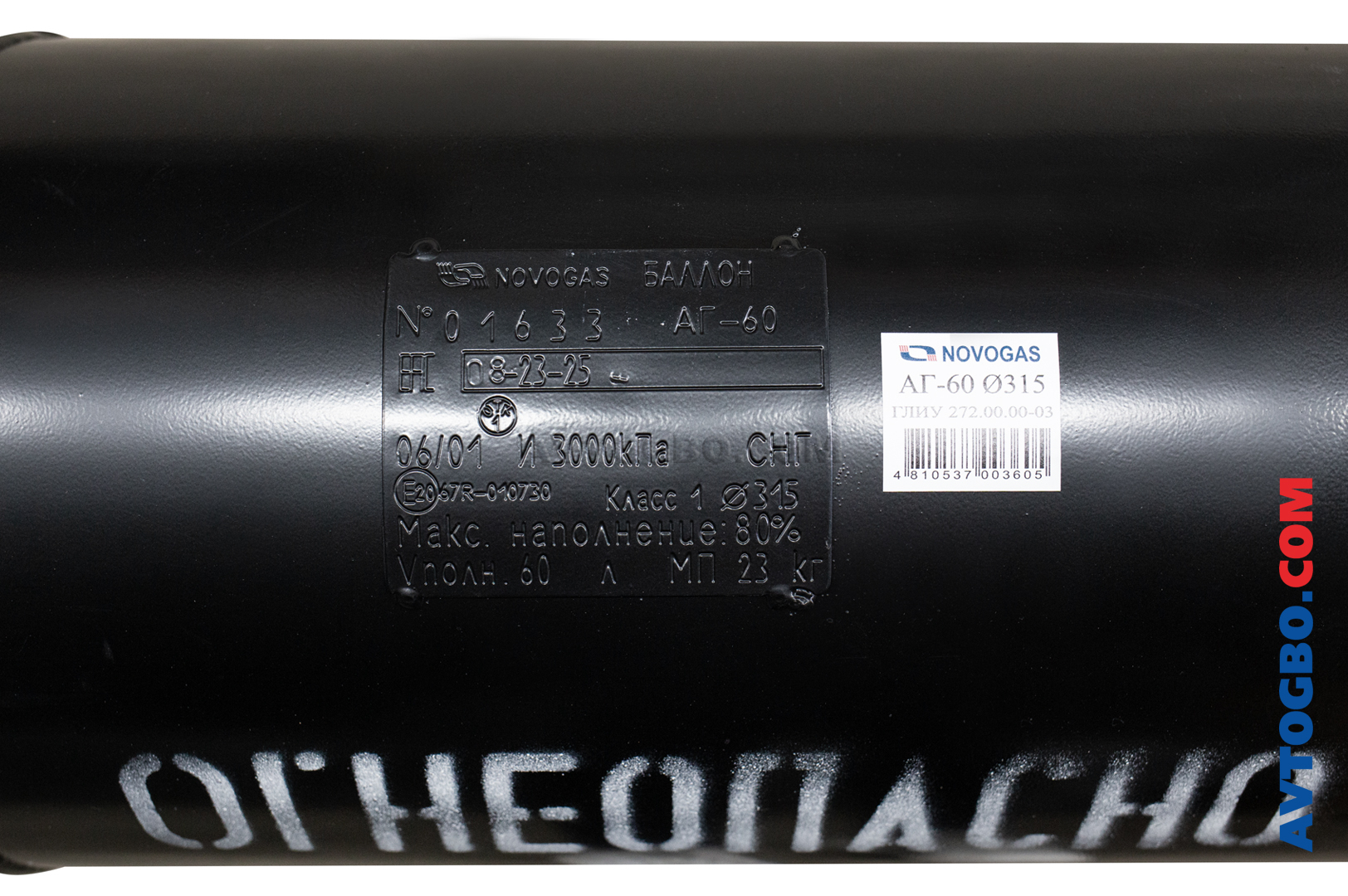 Комплектация: Цилиндрический газовый баллон НЗГА 60 л [315 мм х 886 мм]; паспорт газового баллона.