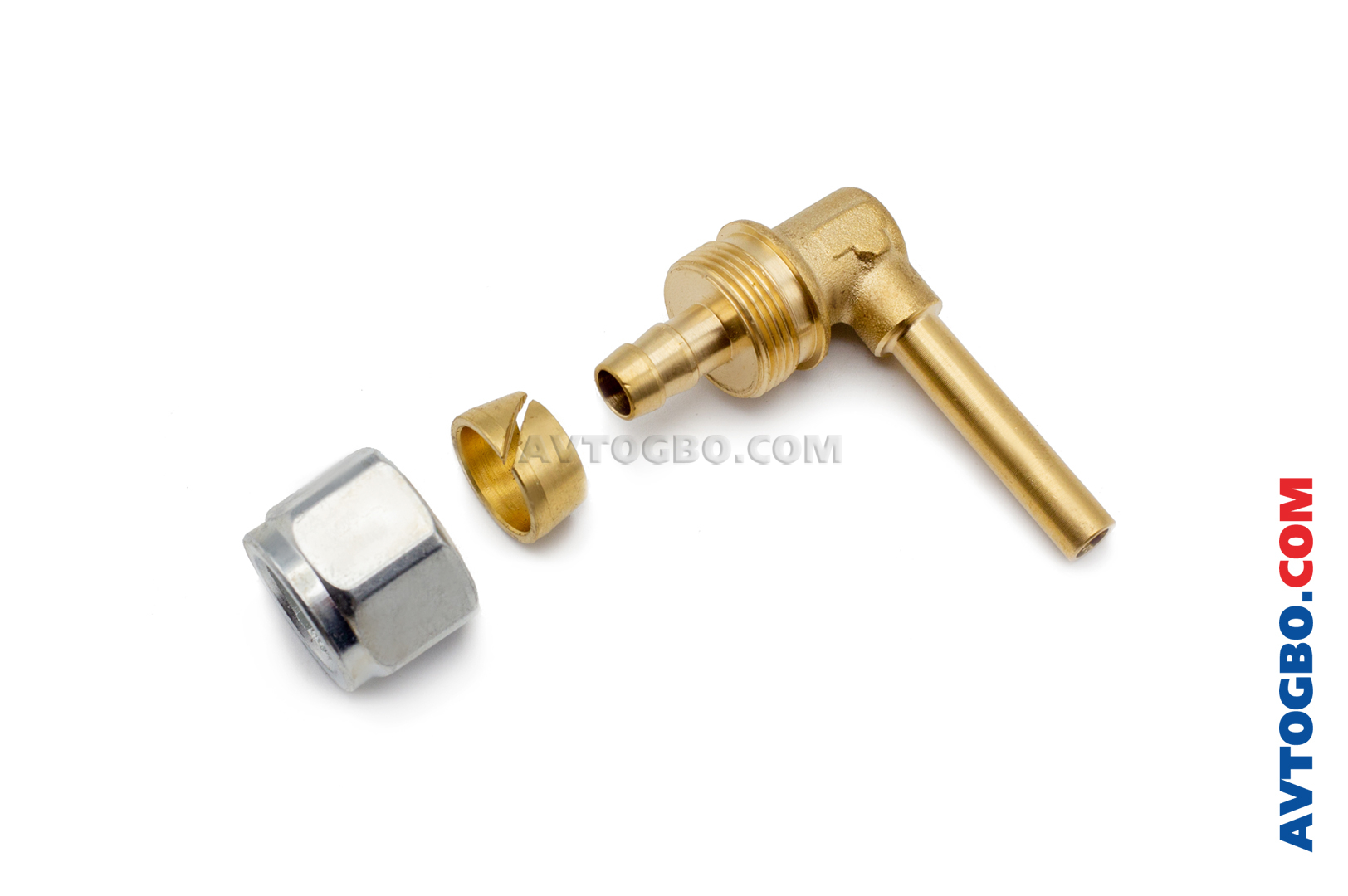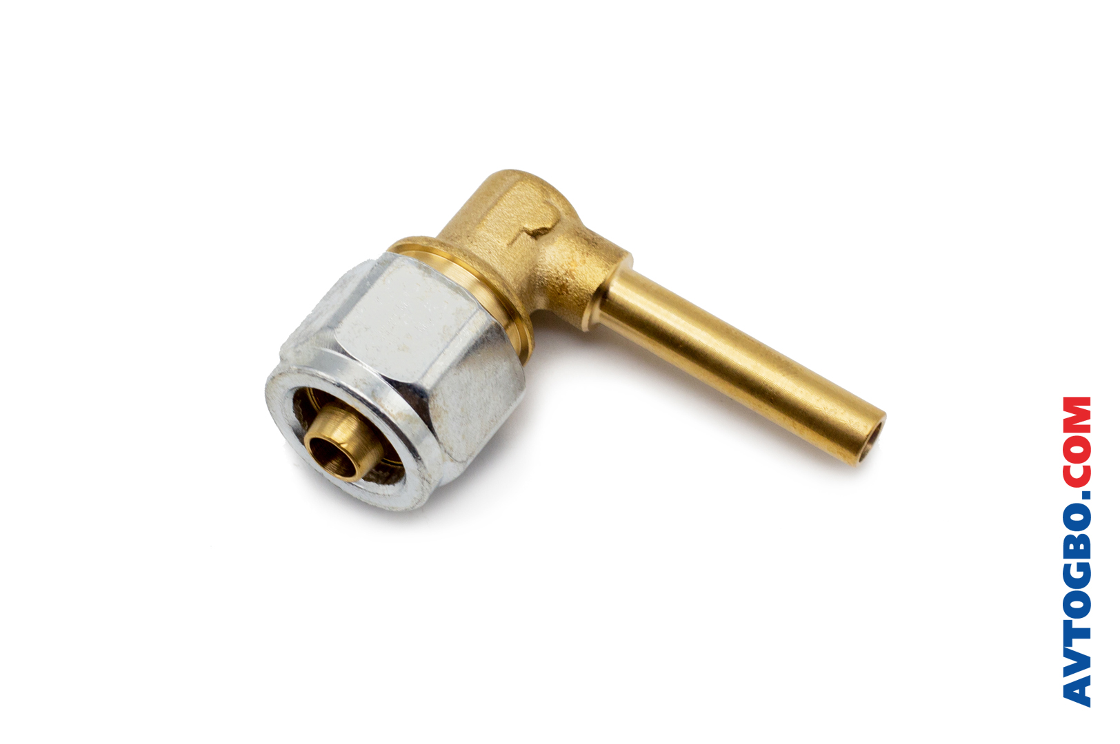 Фитинг (соединитель) для герметичного монтажа газовой магистрали (подключения термопластиковой магистрали к редуктору, мультиклапану, ВЗУ, газовому клапану) в сборе: литой корпус (латунь), гайка (латунь/сталь), муфта (латунь).