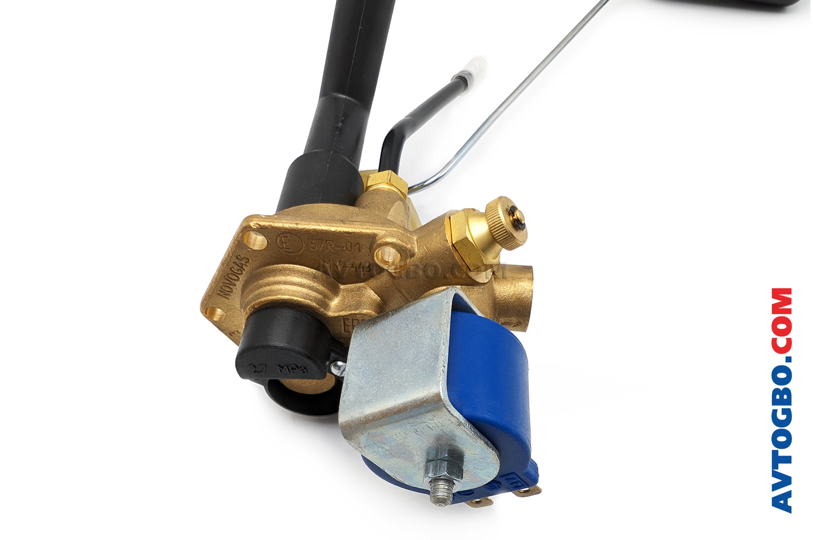 Мультиклапан (блок арматуры) для автомобильных баллонов ТОР высотой 270 мм с наружным фланцем (горловиной), угол установки на баллоне - 0 градусов, с электромагнитным клапаном (ЕМ).