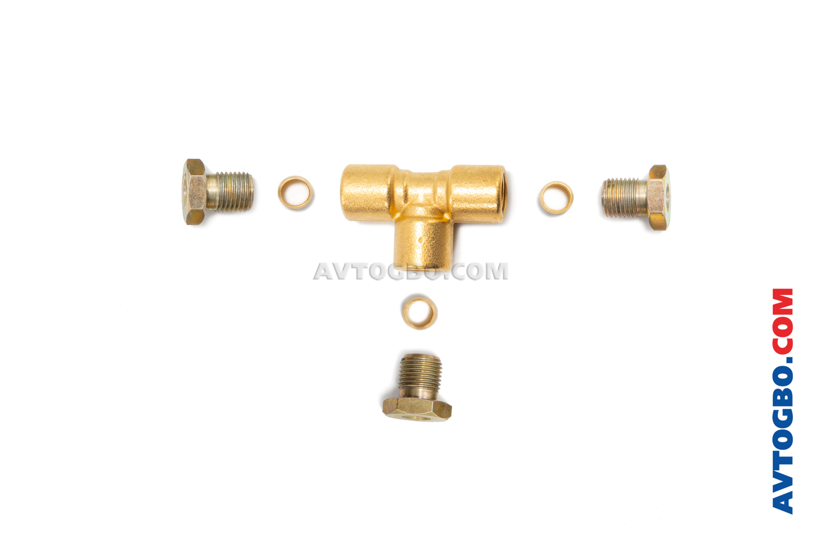 Тройник для газовой трубки в сборе. Диаметр 6 мм. Тройник 6 мм х 6 мм х 6 мм применяют для газобаллонных систем всех поколений для соединения магистрального трубопровода диаметром шесть миллиметров. Данная модель совместима только с медной трубкой или термопластиковой со штуцерами. Обычно соединительный тройник необходим в системах, где пытаются соединить два газовых баллона и сделать один вход на газовый редуктор. Для проведения данной процедуры в комплектацию входит всё необходимое, а именно: 1. Соединительный тройник с внутренней резьбой М10х1 – М10х1 – М10х1; 2. Гайка пропан прорезная D6 М10х1 – 3 штуки; 3. Бочонок латунный 6 мм – 3 шт.